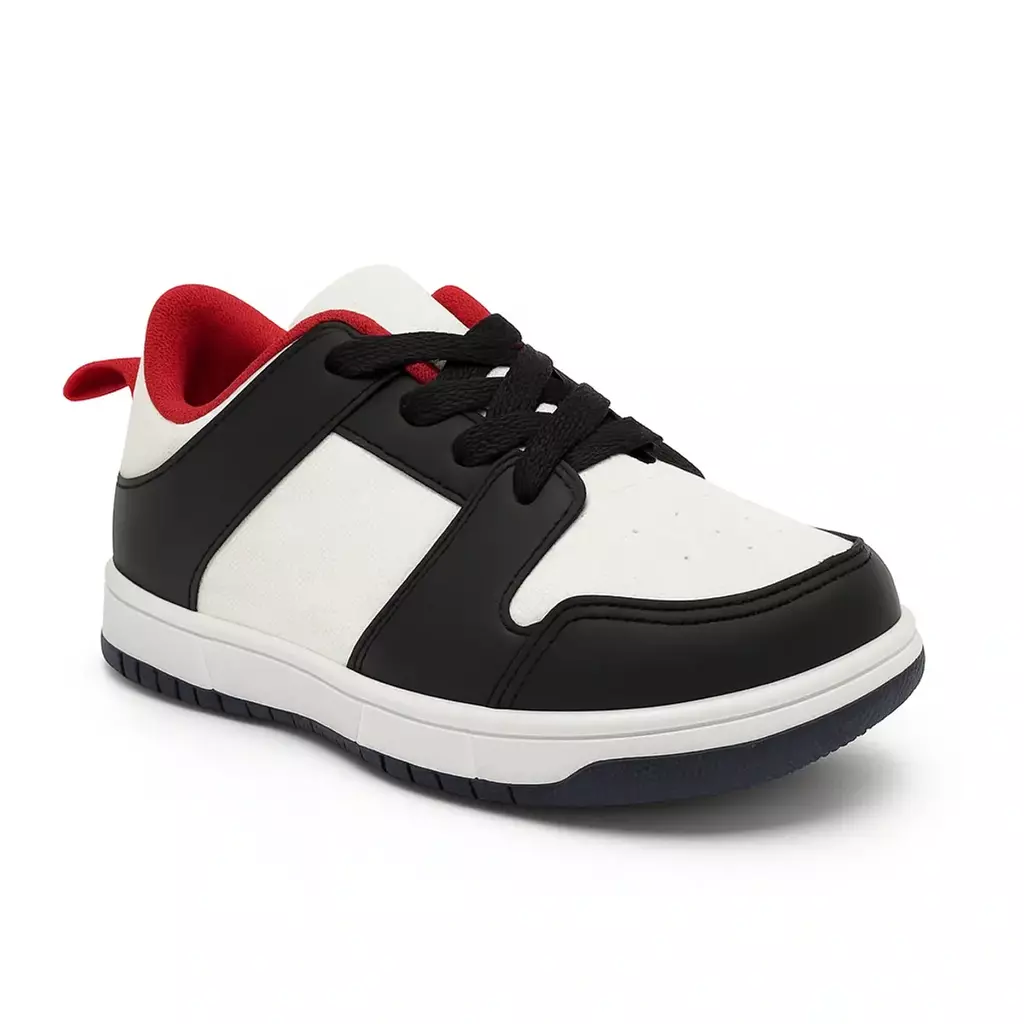 Tênis Infantil DukKids Preto, Branco e Vermelho — Conforto e Estilo para o Dia a Dia